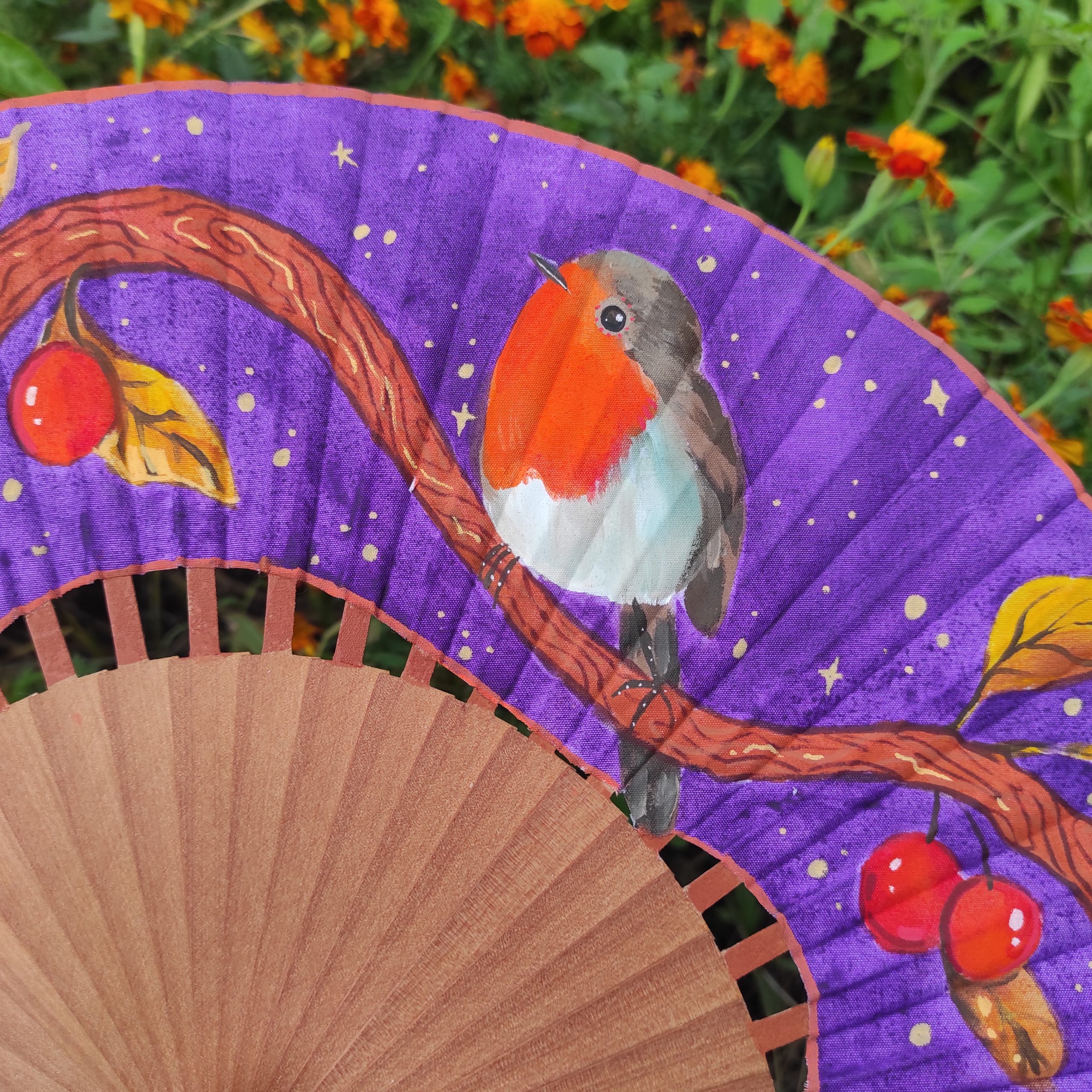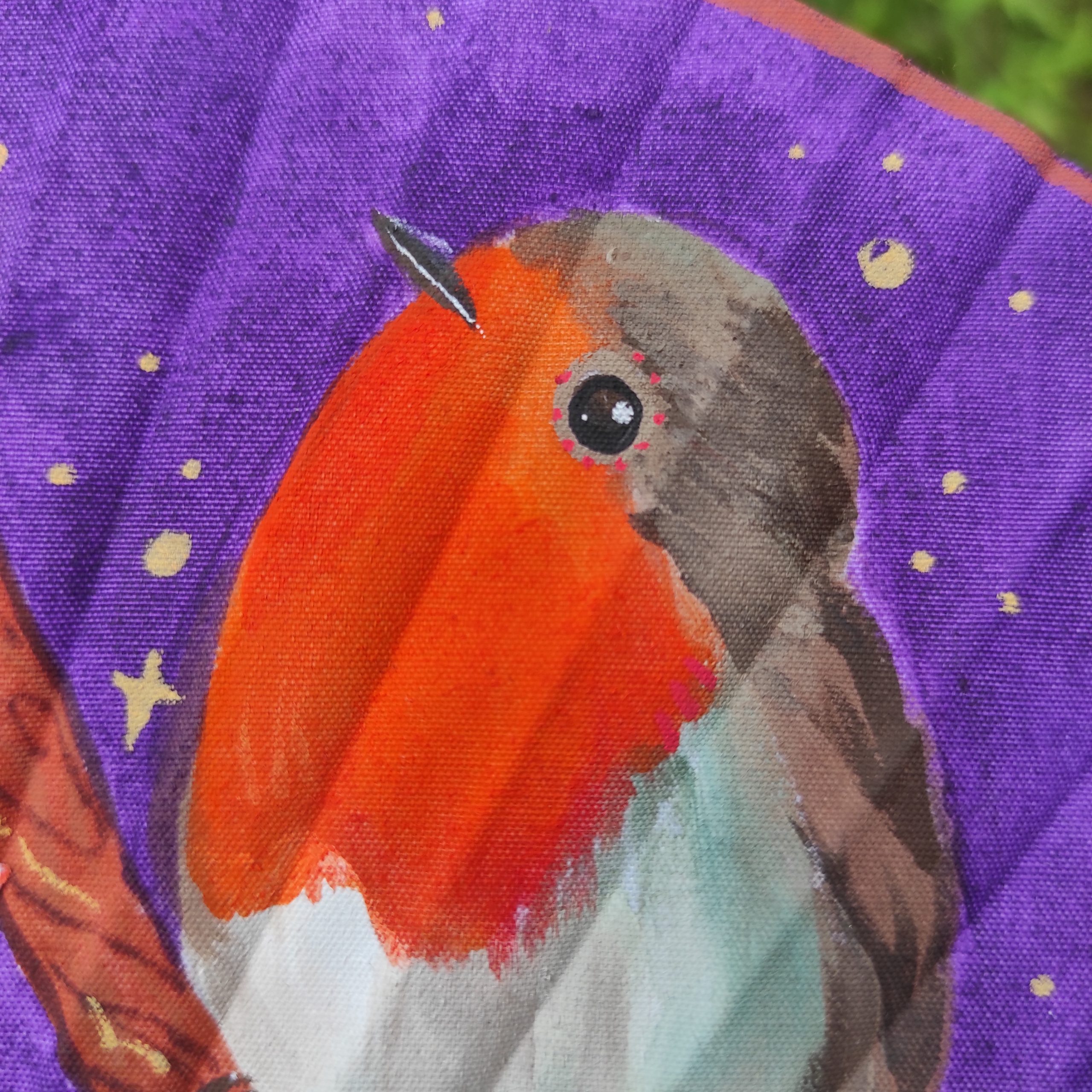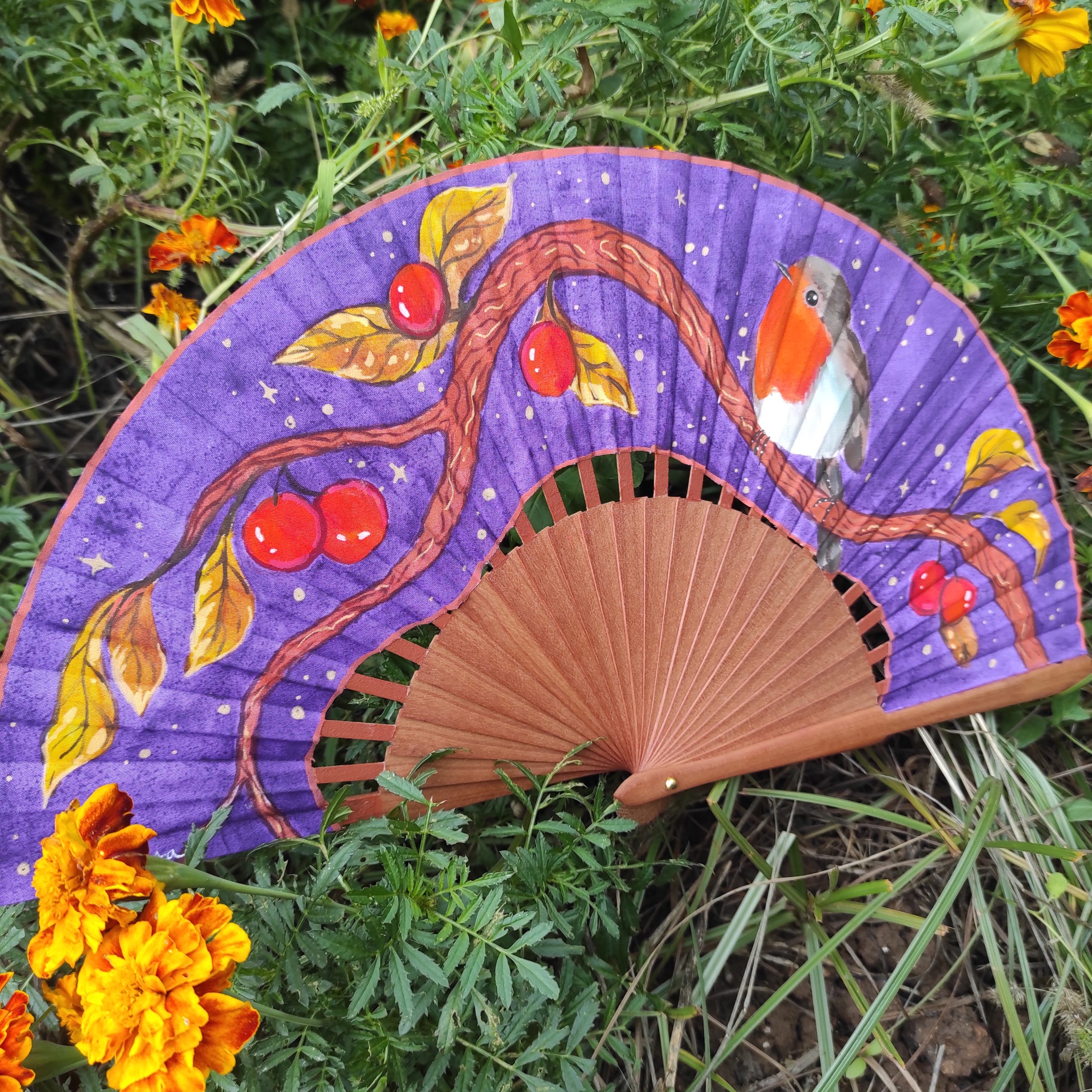 Abanico pintado a mano por nosotras ,hecho en España con madera de peral y país de algodón, materiales muy resistentes. Diseño propio y original, pintado a mano con acrílico textil, recortes trabajados artesanalmente.