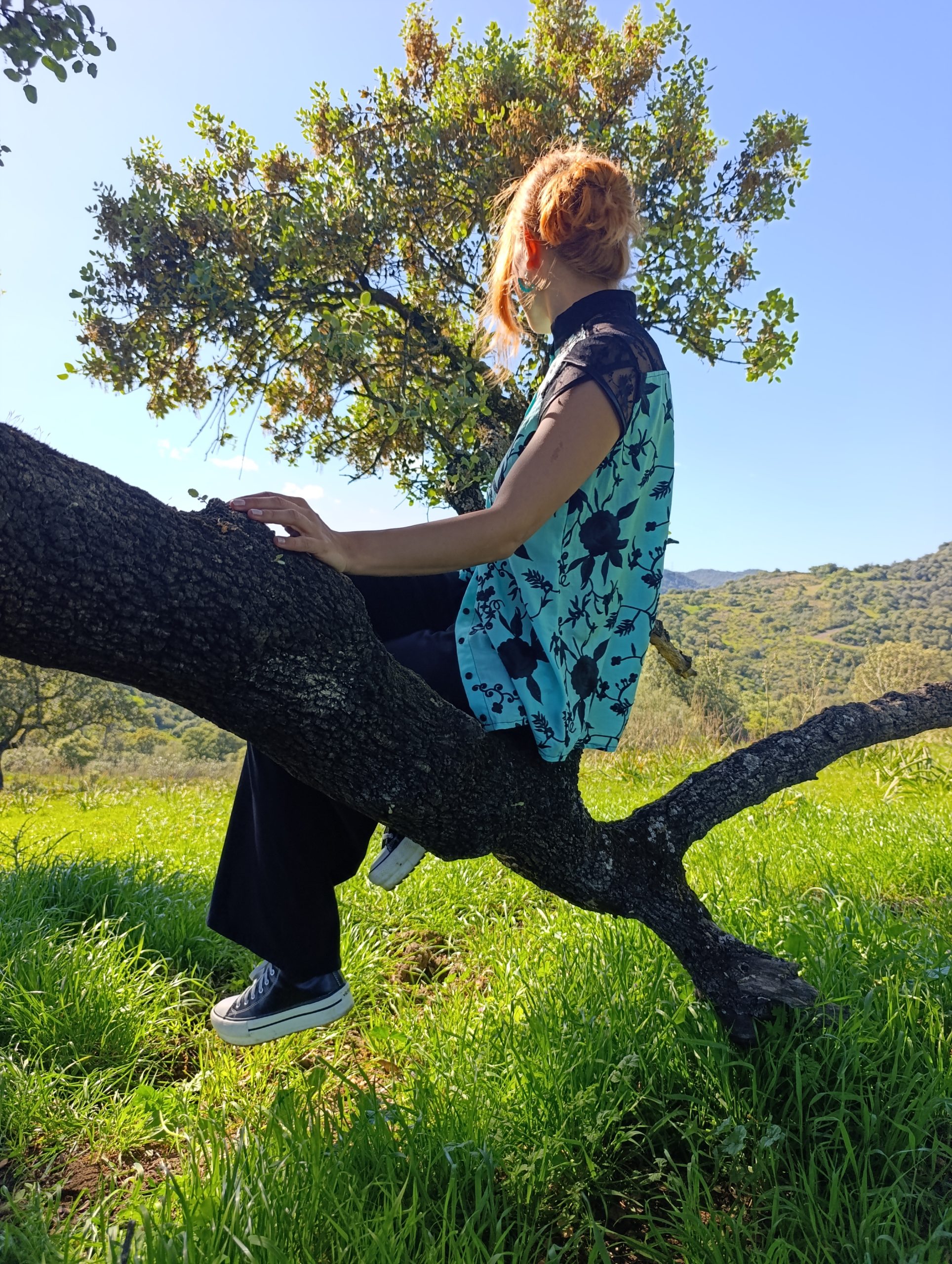 Confeccionada en un tejido suave con mezcla de viscosa y algodón, incorpora un bordado floral en contraste que recorre la prenda aportando textura y profundidad. Su caída es natural, adaptándose al cuerpo sin rigidez.