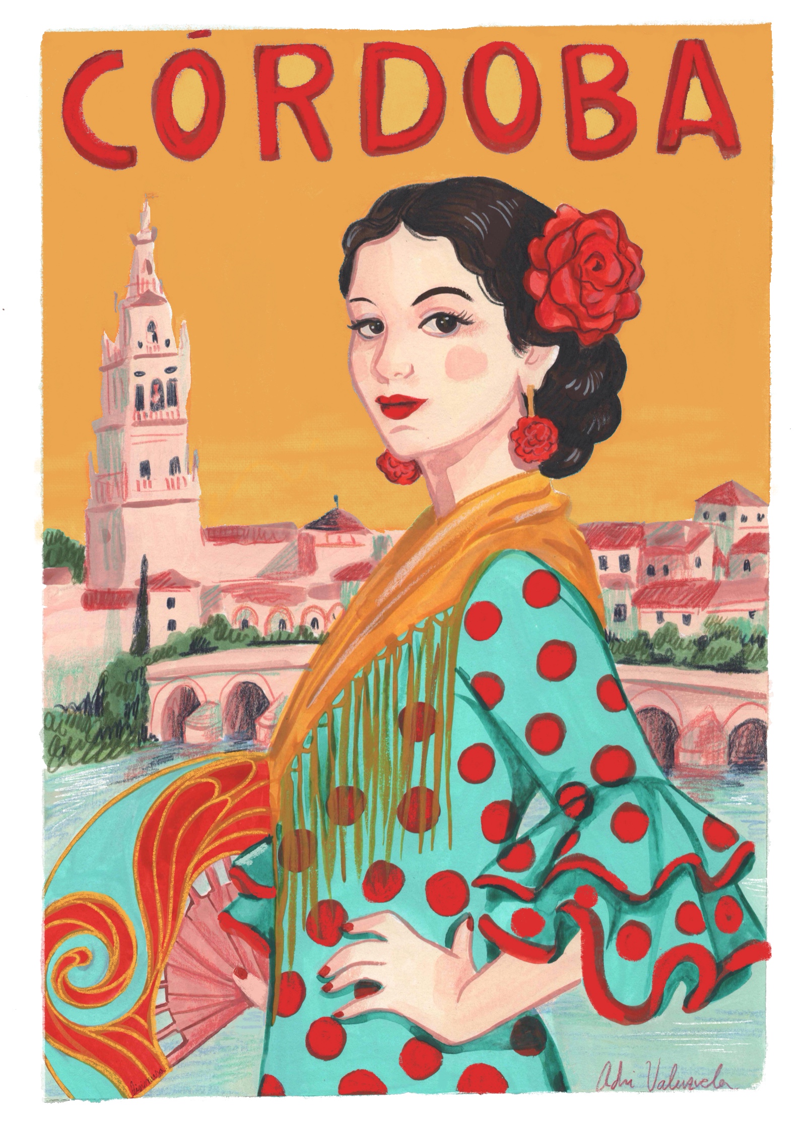 Lámina de Ilustración original de Adri Valenziuela Pintado, @a.d.r.i.valenzuela impresa en papel de 200gr crema de acabado suave