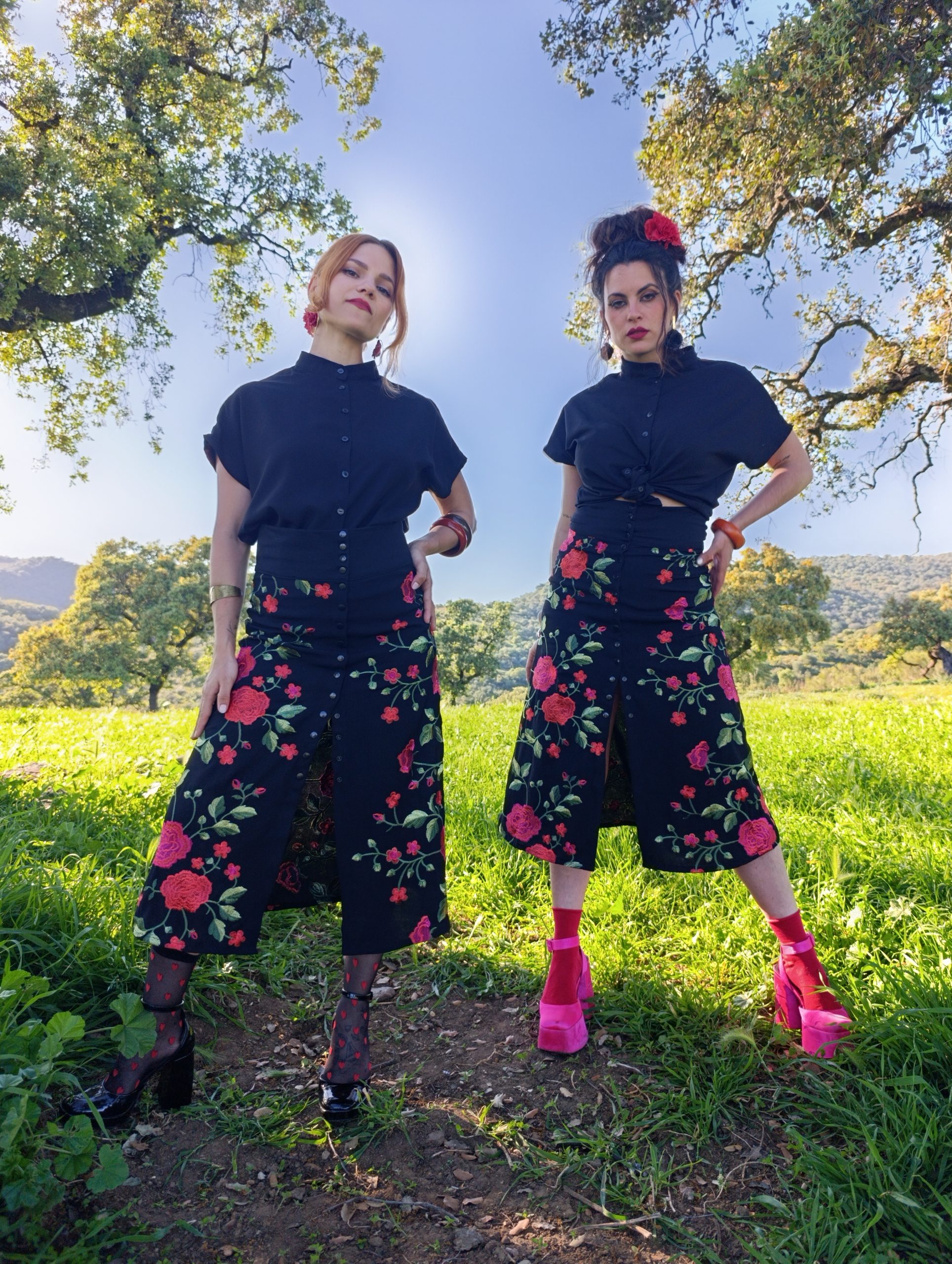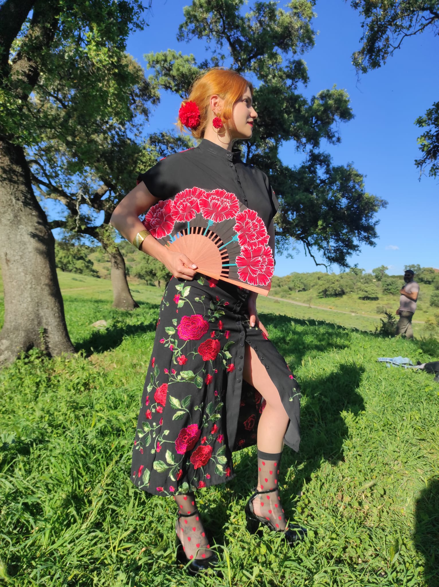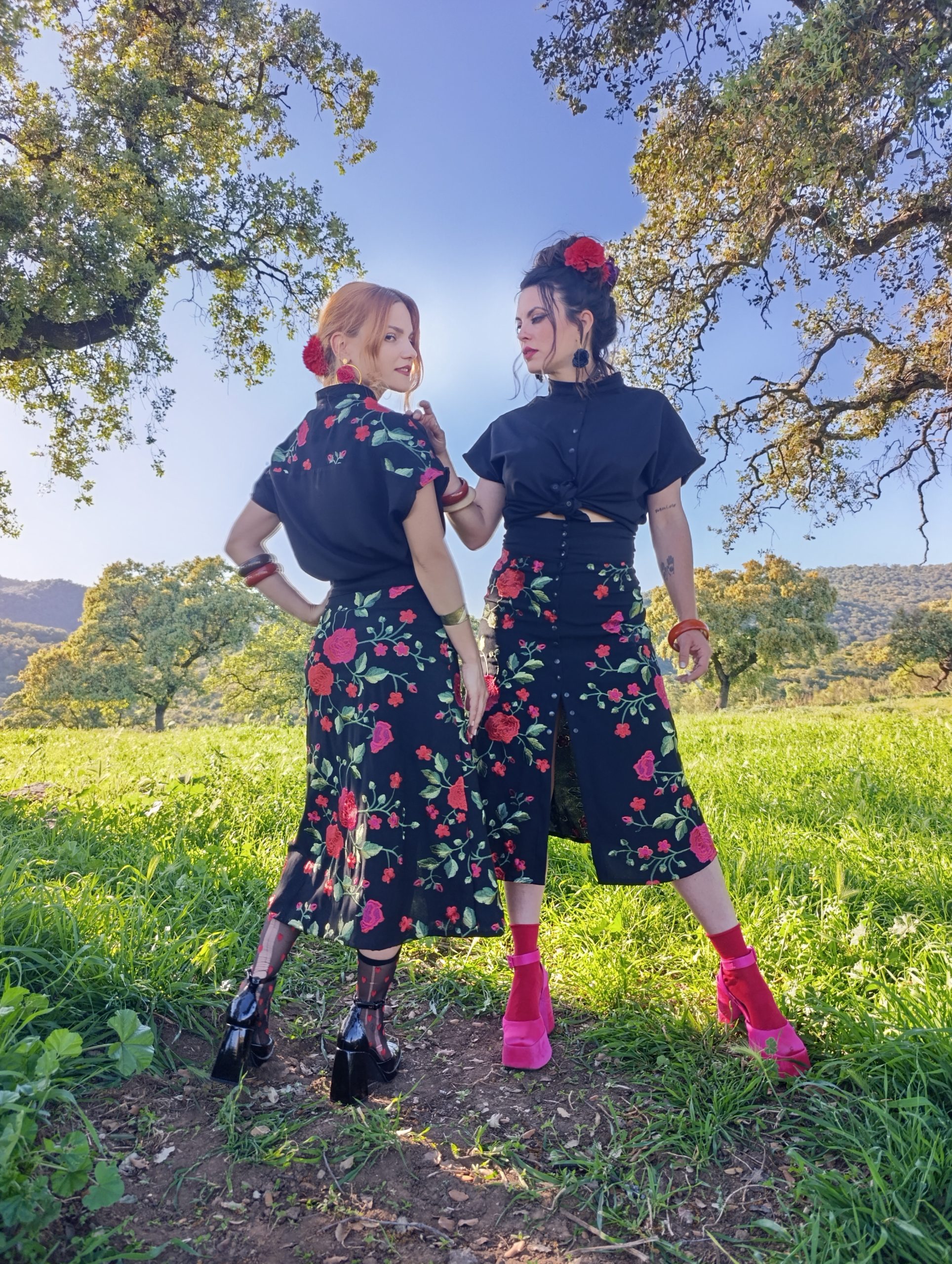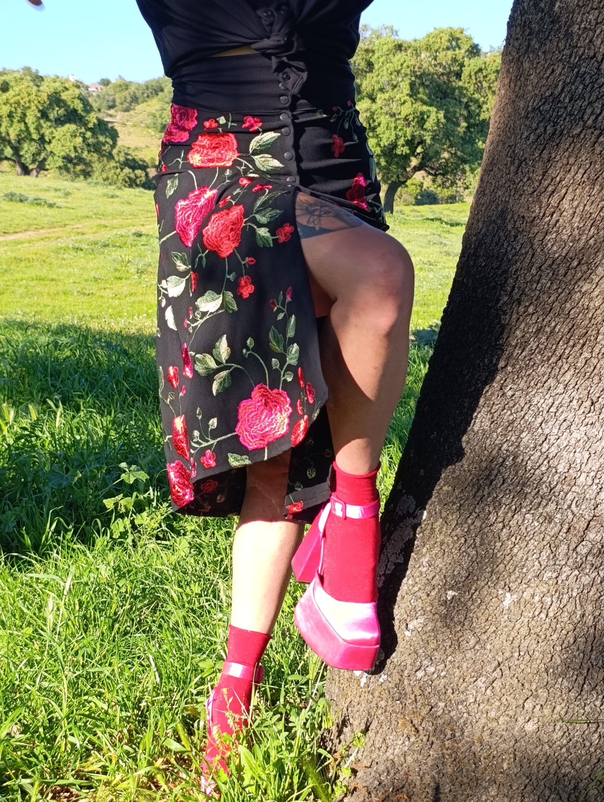 Falda diseñada, patronada y confeccionada a mano, cuidando cada detalle para crear una pieza única.