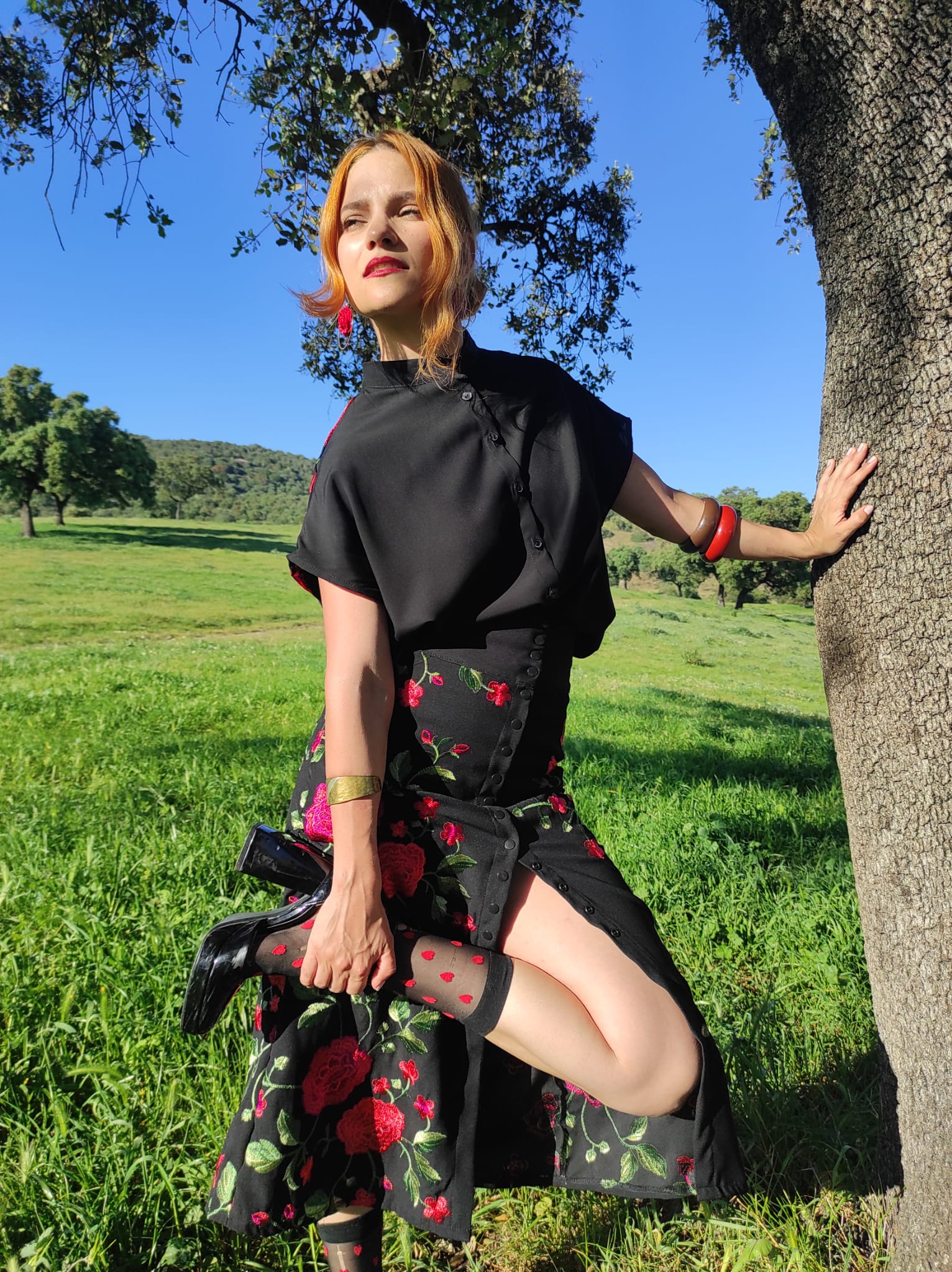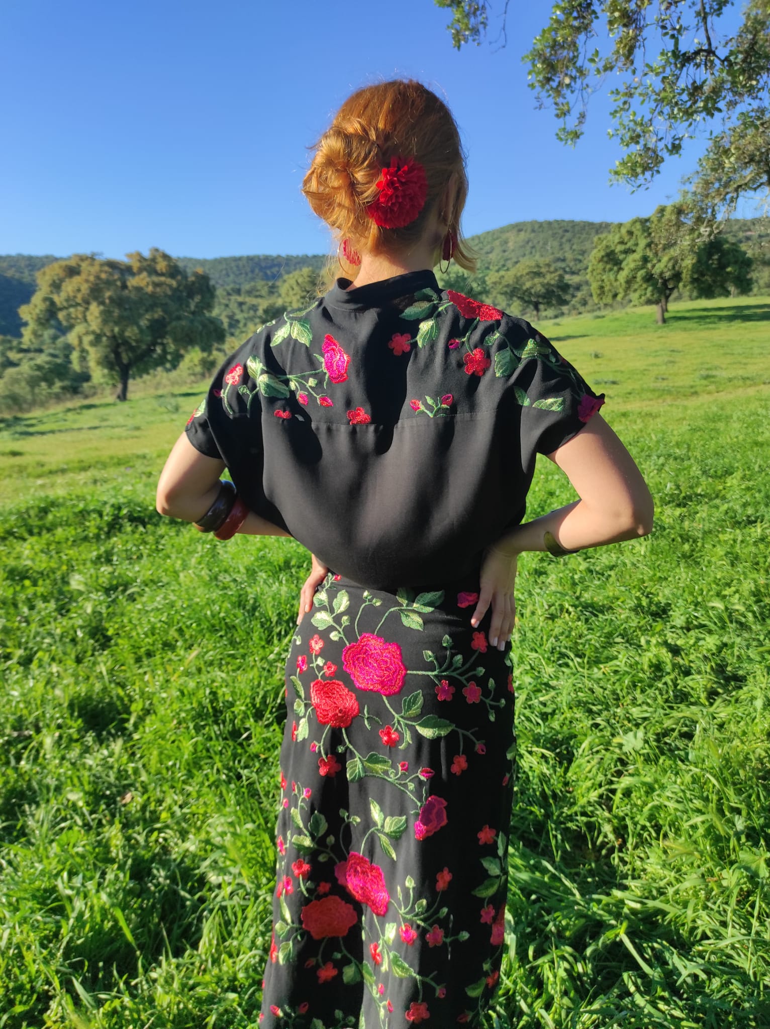Falda artesanal, patronada y confeccionada a mano, cuidando cada detalle para crear una pieza única.
