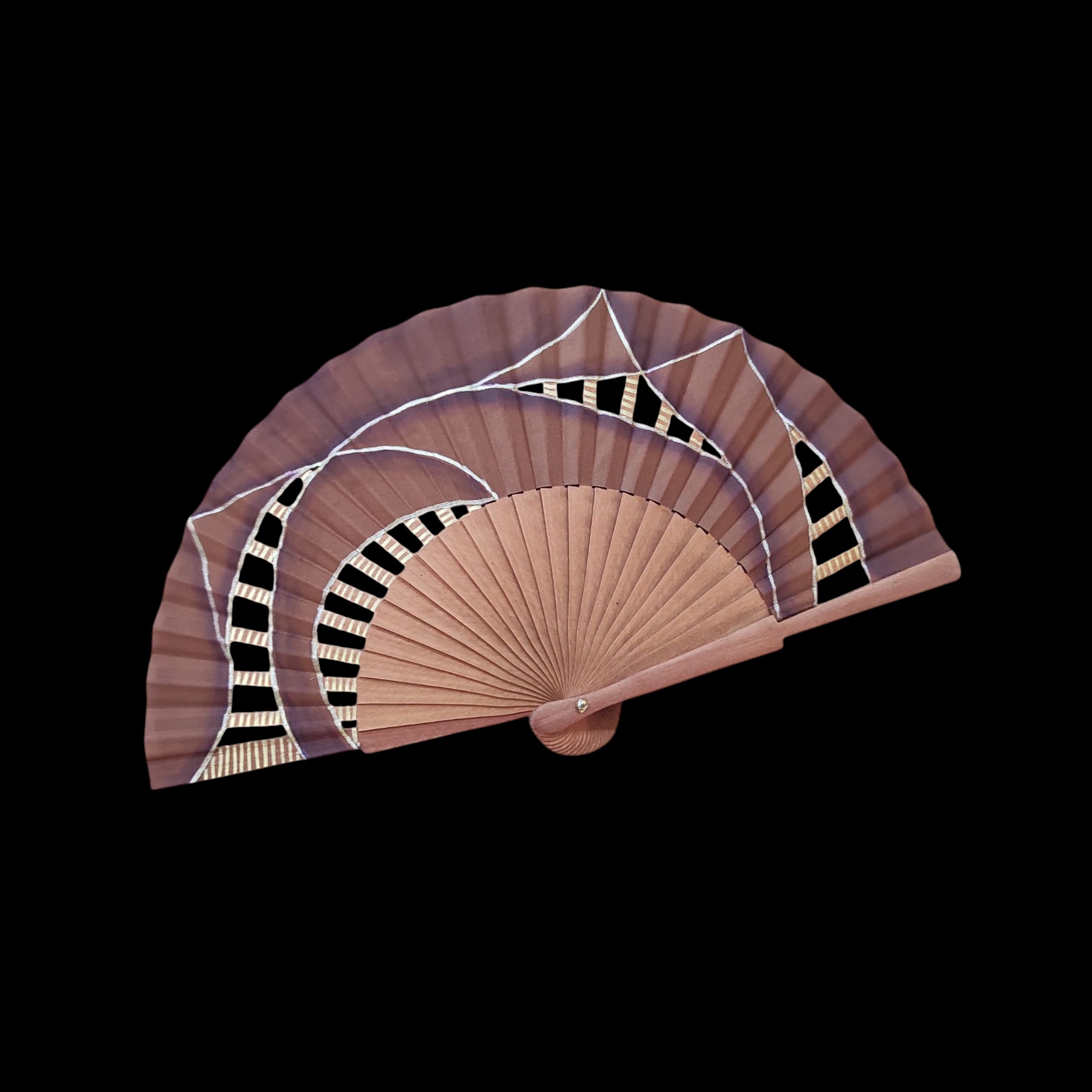 Abanico de bolsillo, pintado a mano hecho en España con madera de peral y país de algodón, materiales muy resistentes. Diseño propio y original, pintado a mano con acrílico textil, recortes trabajados artesanalmente.