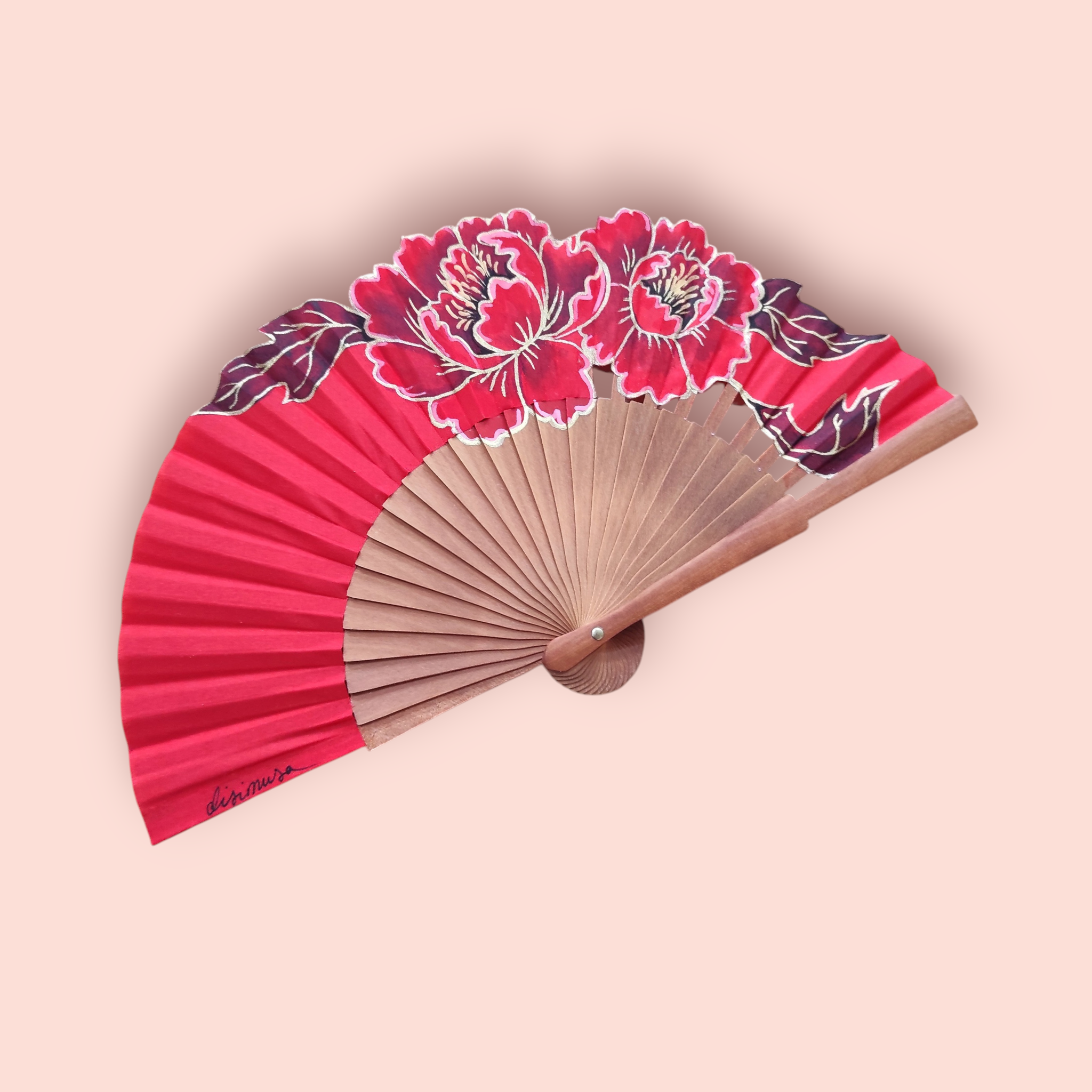 Abanico de bolsillo pintado a mano en España, elaborado en madera de peral y país de algodón, materiales resistentes y de gran calidad.